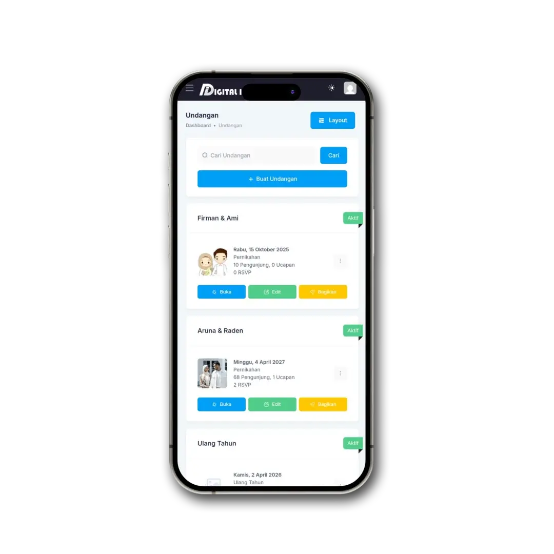Platform untuk membuat website undangan digital mulai dari pernikahan, ulang tahun, aqiqah dan khitan